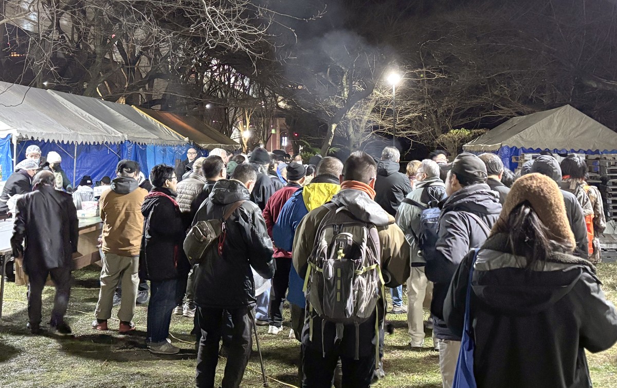 ささしまサポートセンターは1976年に国鉄名古屋駅構内で野宿していた日雇い労働者の方におにぎりを配る活動から始まり、以来、野宿者や生活困窮者の暮らしを応援してきました。写真は名古屋の支援団体と協同して行う年末年始の越冬活動の様子。ささしまサポートセンターは主に医療や生活に関する相談を担当しています(筆者撮影)